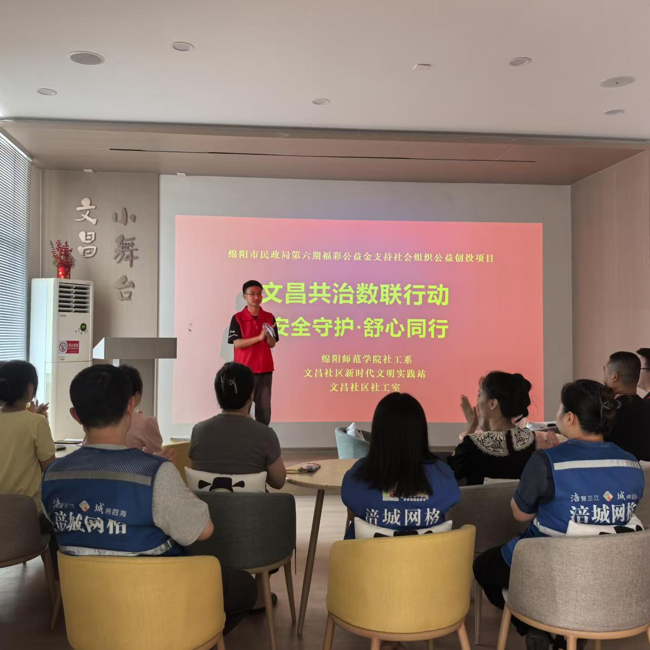 7月25日,由绵阳市民政局第六期福彩公益金支持,绵阳湜湜社会工作服务中心承接、铸爱社工志愿服务团队承办的文昌共治数联行动项目之“安全护航·舒心同行”活动在文昌社区开展。