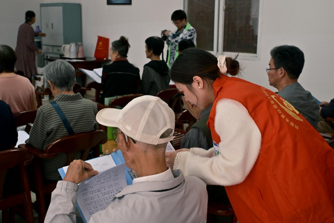 随后,来自音乐学院的志愿者担任“音乐向导”,耐心细致地开展教学,从节奏把握到气息运用进行逐句示范与指导。老教师们认真跟学、积极互动,现场歌声悠扬,氛围温馨融洽,充分展现出退休教师群体积极向上的精神风貌。